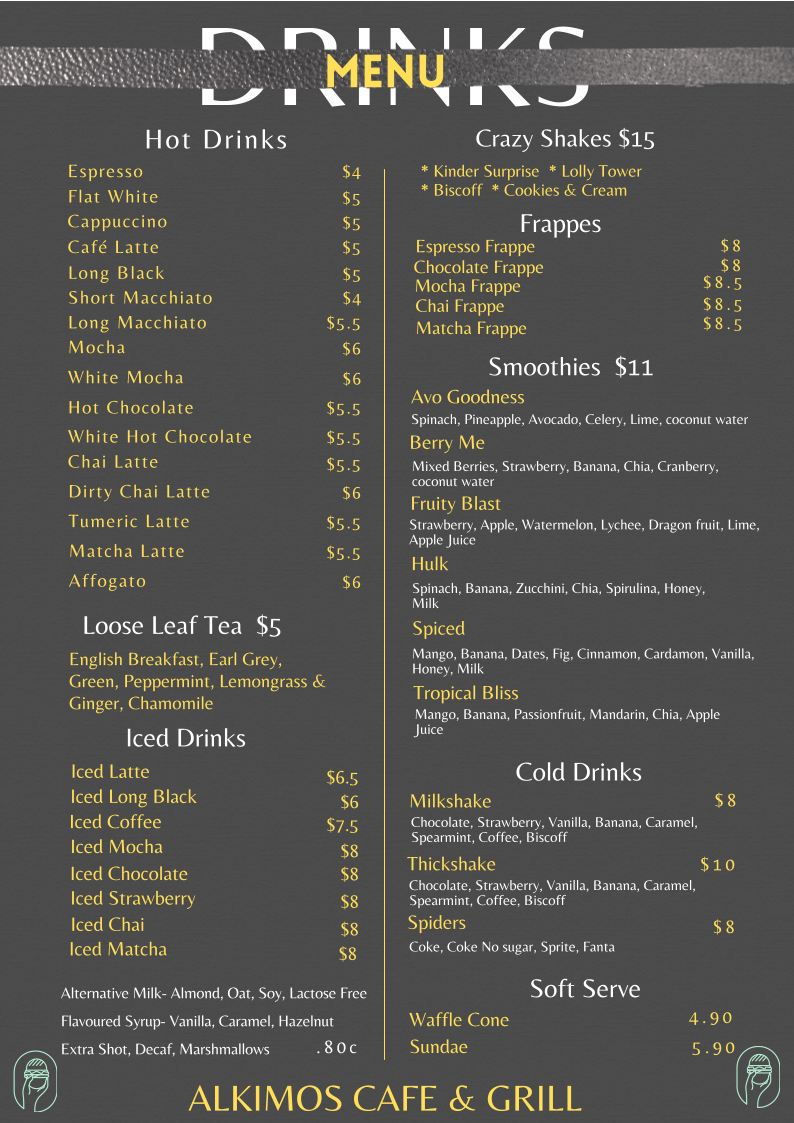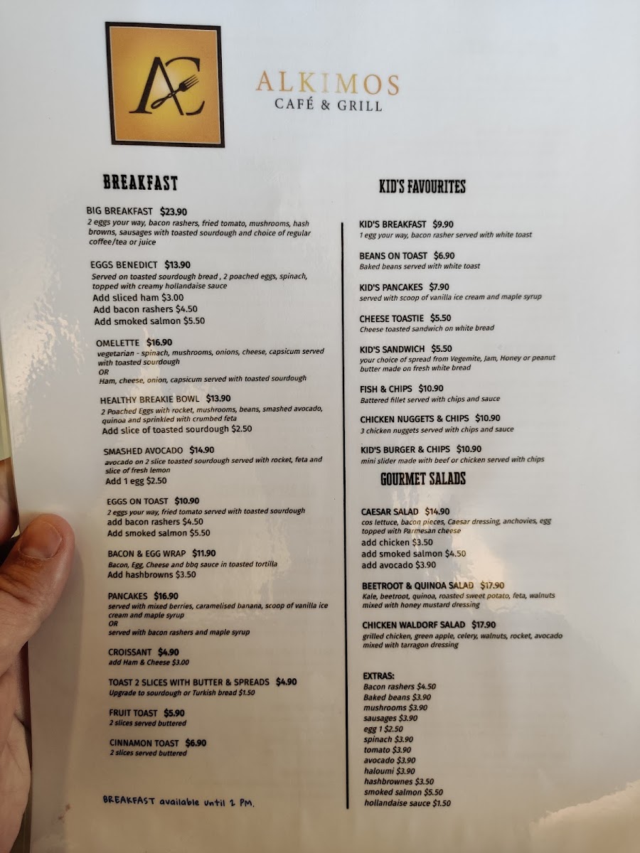 The dining atmosphere at Alkimos Cafe & Grill is warm and inviting, perfect for casual hangouts or catching up with friends over a cup of the best coffee in the area. The cozy setup, punctuated by friendly staff who treat you like family, creates an ambiance where you can relax and take your time indulging in your meal. Grace, one of the baristas, is known for her meticulous attention to detail that ensures your coffee is brewed to perfection each time. With a smile as warm as the coffee, she certainly makes every visit feel special.